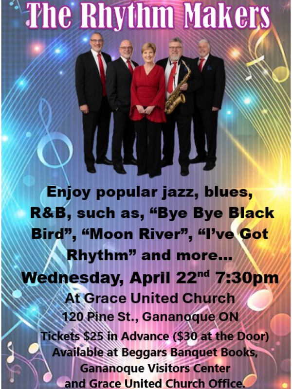 Available at Grace United Church, Beggars Banquet Books and the Gananoque Visitor Centre. Also the link on this page or through Eventbrite